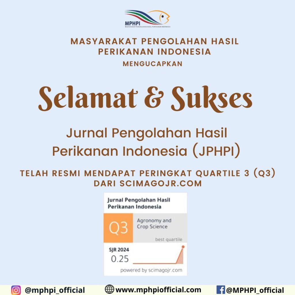 *SELAMAT DAN SUKSES* Masyarakat Pengolahan Hasil Perikanan Indonesia (MPHPI) mengucapkan selamat kepada Jurnal Pengolahan Hasil Perikanan Indonesia (JPHPI) atas prestasi membanggakan mendapat Peringkat Quartile 3 (Q3) berdasarkan Scimagojr.com. Terima kasih kepada seluruh Editorial Team, mitra bestari, managing editor, dan para penulis serta pembaca atas semangat dan kerja kerasnya ! Bagi Bapak/Ibu yang […]