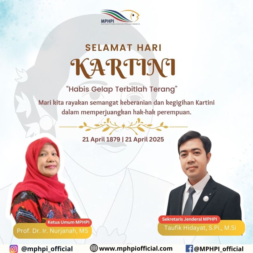 HAPPY KARTINI’S DAY ” Habis Gelap Terbitlah Terang ” Masyarakat Pengolahan Hasil Perikanan Indonesia mengucapkan Selamat Hari Kartini 2025 . “Emansipasi Perempuan, Kunci Masa Depan Bangsa yang Lebih Adil dan Setara” Informasi lebih lanjut mengenai update terbaru MPHPI dapat dilihat pada : Instagram : https://www.instagram.com/mphpi_official/ FB : https://web.facebook.com/MPHPI.official/ #MPHPI #Sinergi #Berkarya #2023-2028