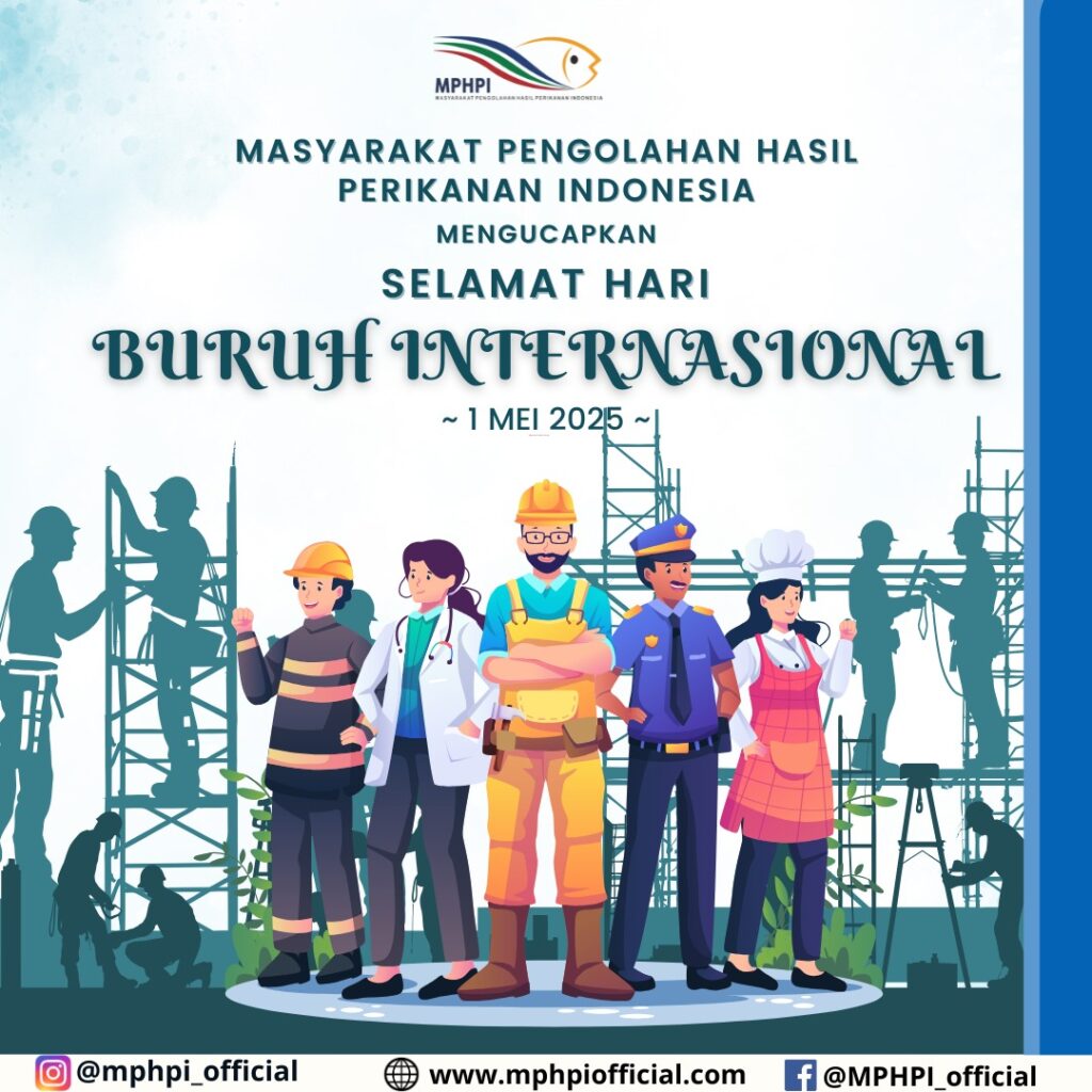 HARI BURUH INTERNASIONAL Masyarakat Pengolahan Hasil Perikanan Indonesia mengucapkan Selamat Hari Buruh Internasional 2025. ” Transformasi Dunia Kerja Inklusif, Digital, dan Berkelanjutan ” Informasi lebih lanjut mengenai update terbaru MPHPI dapat dilihat pada : Instagram : https://www.instagram.com/mphpi_official/ FB : https://web.facebook.com/MPHPI.official/ #MPHPI #Sinergi #Berkarya #2023-2028