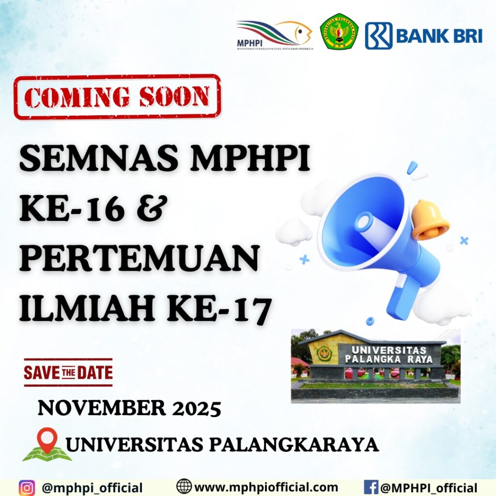 📌*COMING SOON SEMINAR NASIONAL MPHPI ke-16 & PERTEMUAN ILMIAH ke-17*📌 Masyarakat Pengolahan Hasil Perikanan Indonesia (MPHPI) bekerjasama dengan Universitas Palangkaraya (Kalimantan Tengah) akan mengadakan kegiatan Seminar Nasional MPHPI ke-16 dan Pertemuan Ilmiah ke-17! 🎉 Kegiatan ini akan diselenggarakan pada Bulan *November 2025*. Catat tanggalnya 😊! Penasaran dengan rangkaian acara pada kegiatan semnas ? 🤔 Ikuti […]