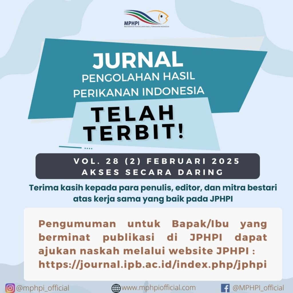 Jurnal Pengolahan Hasil Perikanan Indonesia (JPHPI) Vol. 28 (2) Februari 2025 telah terbit!