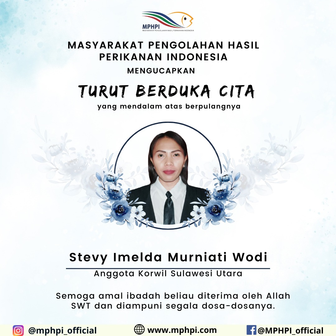 Segenap Keluarga Besar Masyarakat Pengolahan Hasil Perikanan Indonesia (MPHPI) turut berduka cita atas meninggalnya Stevy Imelda Murniati Wodi, S.Pi., M.Si (Anggota Korwil Sulawesi Utara) pada Rabu, 08 Januari 2025. Semoga amal ibadah beliau diterima oleh Tuhan YME dan keluarga yang ditinggalkan diberi ketabahan.